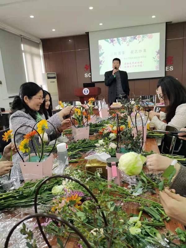 学院祖大庆副院长和蔡可化副院长也来到大家中间,和大家一起赏花,一起切磋。此次插花活动,得到了学院和学院工会的大力支持。校妇委会委员,刘婷婷副院长最后做总结发言,她指出此次活动的举办让大家在快节奏的生活中偶尔放慢脚步,放松心情,展示了自信、积极、向上的新时代女性风采。刘院长祝各位女同胞节日快乐,并鼓励大家以更饱满的热情投身新学期的各项工作中。