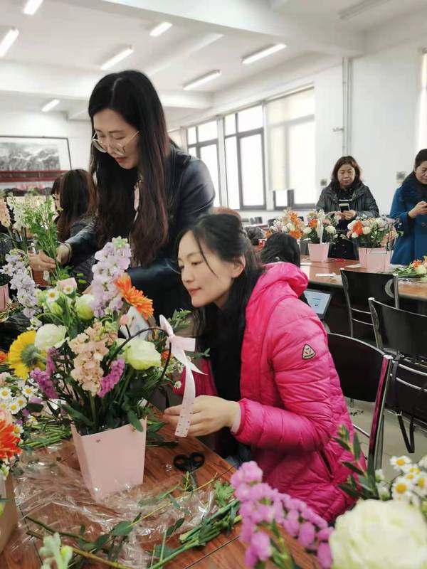 活动开始前,学院书记张向东同志做开场讲话,指出此次花艺沙龙活动既丰富了女教职工的文化生活,提高了大家的艺术修养,又增强了学院的凝聚力。随后,工会主席董永生同志向在座的女教职工致以节日的问候和美好的祝福。活动一开始,经验丰富的花艺师向大家介绍各种花艺知识,并现场示范如何插花。大家兴趣浓厚,对鲜花的品类特性、插花的技巧、作品的保养等知识充满了好奇。经过一个小时的亲身体验,一篮篮色彩绚丽、错落有致、赏心悦目的作品纷纷展现在大家眼前。
