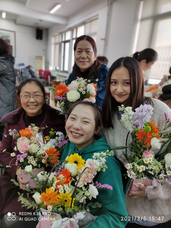 2021年3月5日下午,为庆祝即将到来的国际妇女节,丰富广大女教职工的文化生活,博鱼体育 工会组织了一场温馨的插花活动。大家齐聚一堂,在芬芳的花香中度过了一个美好的春日午后。
