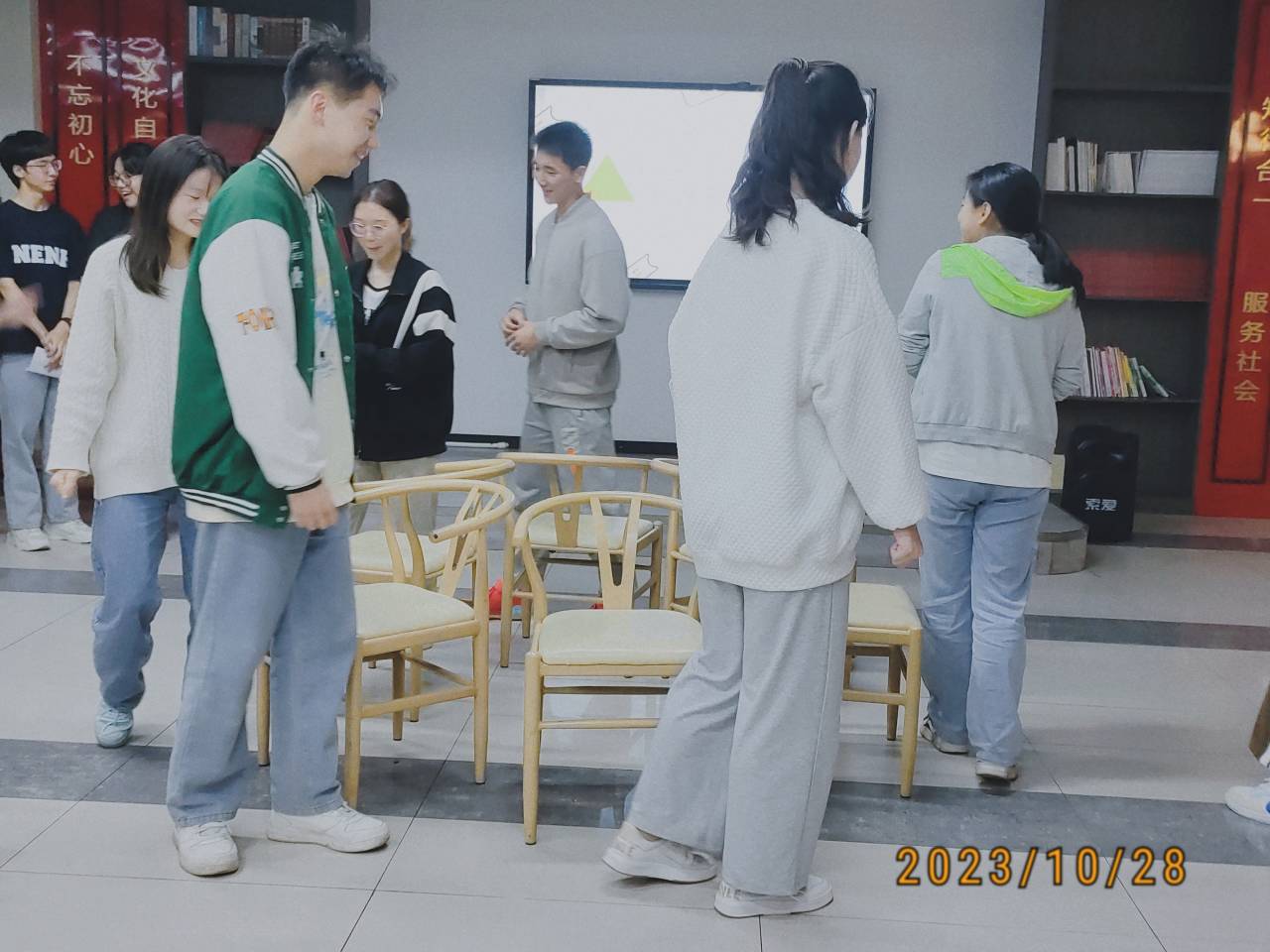 首先,主持人用网上热播的“逃离大英博物馆”短视频引入了话题,简要介绍该剧的主要内容。然后是活动的预热环节,在场同学分成4个小组,每小组成员进行简短的自我介绍。接下来,由不同小组扮演不同系列的文物,同学们从文物的视角介绍了自己的历史、特点和价值。游戏部分包括“你画我猜”——根据文物形状抢答文物的英文名,“抢椅子”等。最后一个环节是“编故事”,每组结合给定的题目,编写自己组代表的文物逃离大英博物馆的故事,并用英语进行分享。最后,通过对每一个环节的计分,评出优胜组和优胜个人,给予奖励。