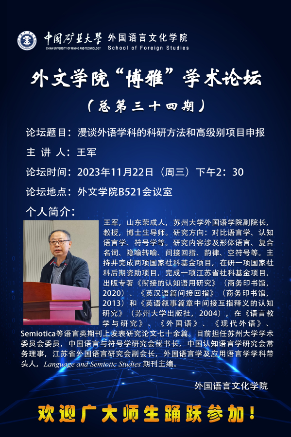博鱼体育 “博雅”学术论坛(总第三十四期)漫谈外语学科的科研方法和高级别项目申报
