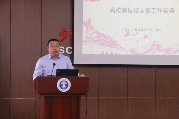 董彬作题为《高校基层党支部工作实务》报告。他结合上一轮学校党委巡察学院情况,针对学院学生党支部建设存在的主要问题,从切实增强党支部建设的责任感和紧迫感、准确把握党支部标准化建设的主要内涵和不断推进党建工作与人才培养工作融合互促等三个方面展开分析,结合《中国共产党发展党员工作细则》和《中国共产党普通高等学校基层组织工作条例》,重点就学生党支部的建设和规范进行了解读。最后就学生党员发展的流程和规范,结合《中国共产党发展党员工作流程图》和学校党员发展材料检查观测点,进行了详细的分析。