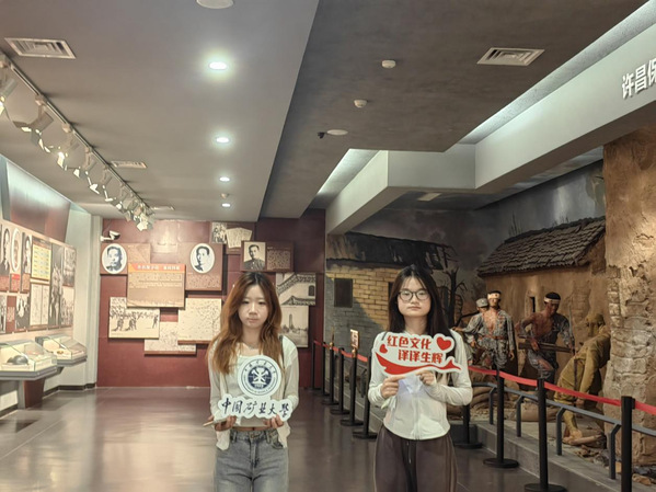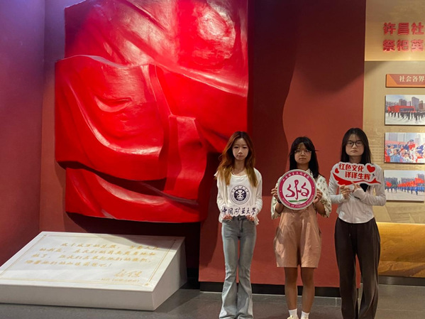 在许昌革命烈士纪念馆,实践团成员详细了解许昌市的历史脉络,见证这座城市的变迁与发展。她们深入进行了一次细致而全面的学习之旅,结合实践团的主要任务,分别负责拍摄记录各展览品的文字介绍及其英文翻译,并进行翻译纠错,将自己所学应用于实践。同时通过VR模拟场景和智能讲解电脑,身临其境地体验了那段烽火连天的岁月。此次实践活动,青年学子们在进行翻译纠错的同时,深切缅怀了革命先烈的光辉事迹。他们纷纷表示将铭记历史、砥砺前行,将自己个人理想融入祖国复兴大业,为实现中华民族伟大复兴的中国梦贡献自己的青春力量。