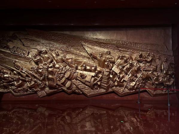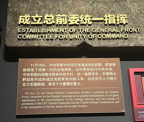7月10日下午,位于徐州的实践团参观了徐州的淮海战役纪念馆。实践团内的同学先去了“人民的胜利——淮海战役历史陈列展览馆”。展馆分为“两种前途——命运决策”、“逐鹿淮海——决战决胜”、“人民战争——深厚伟力”、“革命英烈——永垂不朽”四个部分,遵循“团结人民——为了人民——依靠人民——礼赞人民”的逻辑脉络。在对战役的宏观认知与微观的详细了解后,同学去到了淮海战役烈士纪念塔。塔两侧回廊、角亭环抱,回廊内镶装着周恩来、刘少奇、朱德、陈云、邓小平、刘伯承、陈毅、江泽民等党和国家领导人为淮海战役烈士的题词和3.1万余名烈士的英名。淮海战役纪念馆深刻表明了这是一场“小车推出来的胜利”、是“军民团结如一人,试看天下谁能敌”主题的生动描绘。