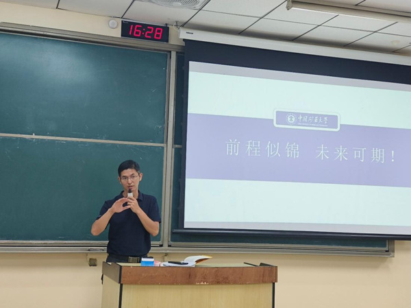 刘洁茹对2021级学生推免工作、毕业实习安排进行了详细说明,介绍了保研的时间节点、申请条件、具体流程及相关注意事项,解决了部分同学对保研内容不了解、不清晰的问题。她希望获得推免名额的同学能够从自身实际情况出发,找准合适的目标院校,在大四漫漫征程之中砥砺前行。