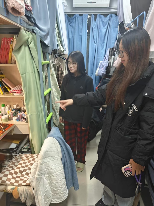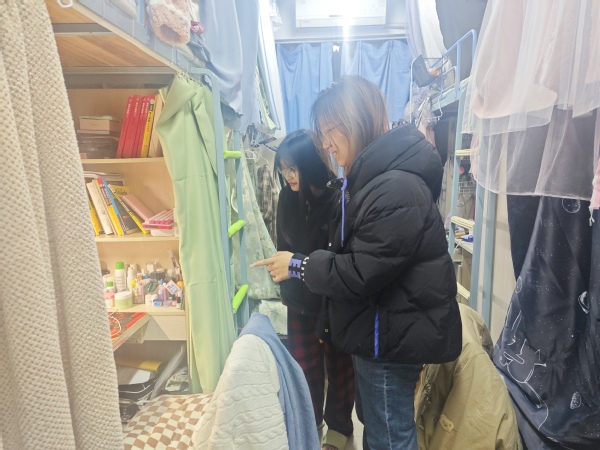 检查过程中,班干们认真负责,严格按照卫生标准对各宿舍进行细致检查。内容涵盖床铺整理、地面清洁、物品摆放、用电安全、卫生间及阳台卫生等多个方面。多数宿舍表现良好,室内整洁有序,展现出积极向上的宿舍风貌。但也有部分宿舍存在一些问题,如物品杂乱、垃圾未及时清理等,检查人员均予以详细记录并现场提出整改建议。
