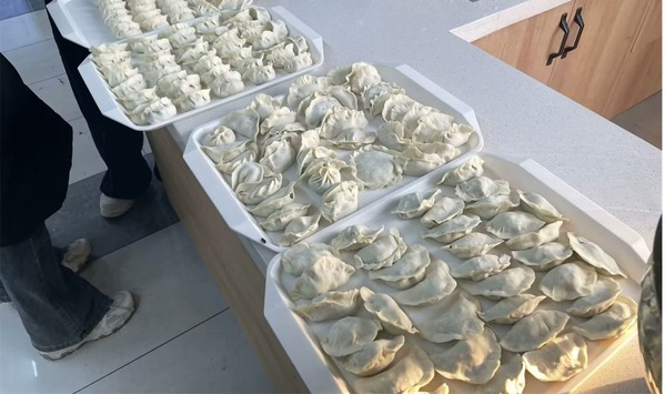 活动由食堂工作人员提供馅料和饺子皮,同学们被分成各小组进行分馅。在包饺子时,同学们手法各异,别出心裁,包出了各种奇形怪状的饺子。同学们有序按照顺序来到“妈妈厨房”煮饺子并进行品尝。活动中,同学们积极参与,相互交流了各自家乡饺子馅料的独特搭配与包饺子的手法。