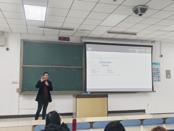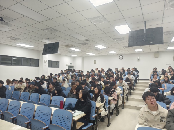 朱正中以近期人工智能领域热点DeepSeek以及近期热映影片《哪吒》为切入点,引导学生关注时代发展趋势学会认识AI、拥抱AI通过一系列图片,回顾了同学们进入大学以来的点点滴滴,通过详实数据通报了2024届毕业生深造和就业情况,并对一年度学院第二课堂开展尤其是外语类学科竞赛的情况做了分析。针对学生关切的转专业问题,他建议同学们要立足自身定位科学规划,避免盲从。对同学们提出了希望和要求:认清自我,做规划有方的自己;善待一切,做从容不迫的自己;规律作息,做健康有力的自己;广泛涉猎,做腹有诗书的自己。做到自尊、自信、自立、自强,成为身体有力、眼里有光、心里有爱、腹中有才、胸中有志、肩上有责的时代新人。