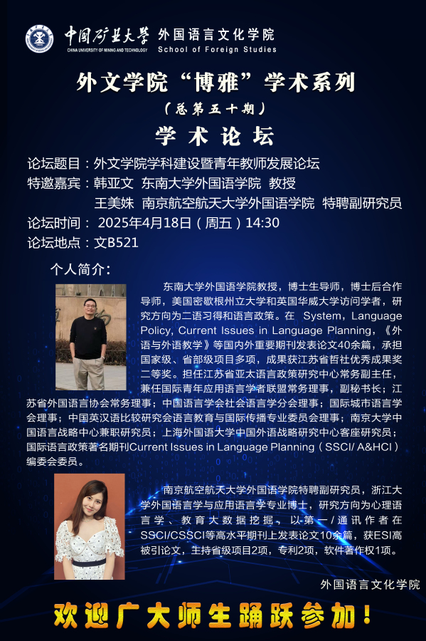 博鱼体育 “博雅”学术系列(总第五十期)学术论坛--博鱼体育 学科建设暨青年教师发展论坛