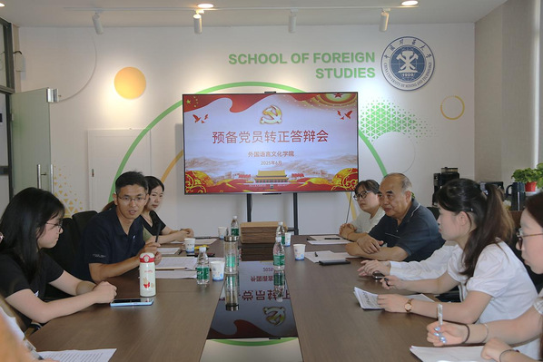 在B510党建工作室举行预备党员转正答辩会。院党委副书记朱正中、院关工委常务副主任李灏以及院兼职辅导员担任答辩评委。