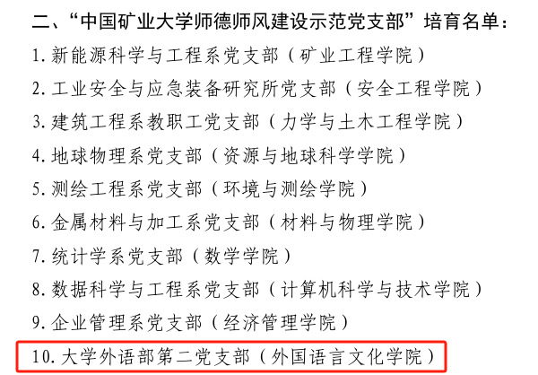 “中国矿业大学师德师风建设示范党支部”培育名单