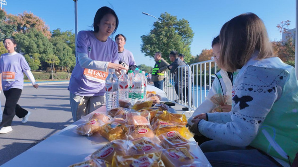 活动当天,志愿者们统一着装,清晨便值守于各补给点位,有序摆放面包、矿泉水等物资,耐心引导参赛选手完成检录。赛事过程中,他们坚守岗位,悉心看管物品,及时提供补给,以细致周到的服务保障了赛事各环节有序推进。