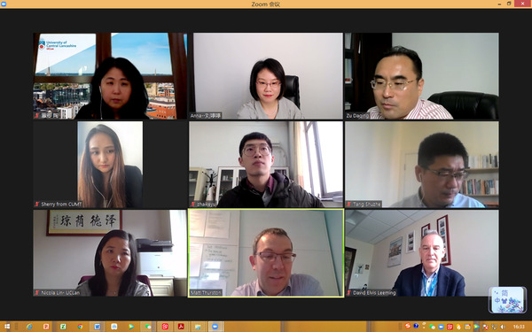 洽谈会肯定了上一个合约期内双方院校的合作成果,并围绕接下来的合作方向进行了具体交流讨论。祖院长首先就双方已经开展的3+1学位项目、暑期实习项目及教师培训项目进行了总结,肯定了既有项目的成果,并表示对未来双方的国际交流合作愿景充满信心。接下来刘院长就疫情新常态化背景下,双方可探索的交流合作新模式、新方向提出了建议,指出双方可在外籍专家课程共建、科研合作、语言外教选聘及学生交换交流等方面开展线上、线下工作,加强合作的深度和广度。David Leeming主任也提出了师生共同参与线上研讨及教师培训的新方向。接下来双方代表就已提出的合作交流方向展开了具体讨论,洽谈会初步确定了国际交流合作模式,会谈成果显著。
