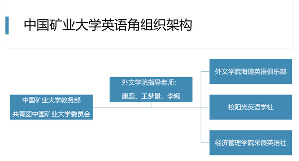 又是一年开学季,中国矿业大学英语角也随之启动。2022年9月17日下午,唐蕊、李嫣、王梦景三位英语角指导老师和阳光英语学社、采薇英语社、海德英语俱乐部的主要负责同学们开展了线下会议,共同商定这一学年英语角工作相关事宜。