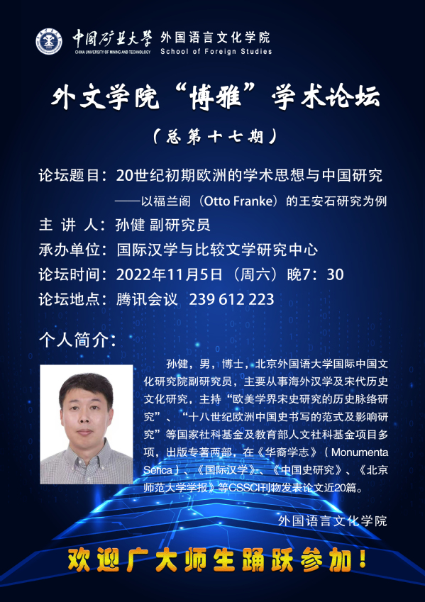 博鱼体育 “博雅”学术论坛(总第十七期)20世纪初期欧洲的学术思想与中国研究——以福兰阁(Otto Franke)的王安石研究为例