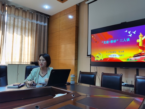 9月22日下午,大外第一党支部与大外第一教研室在文B521联合举办了第一期“党建+教研”三人谈活动。活动由支部书记李淑玲老师主持,刘婷婷副院长、马宝鹏老师和李淑玲老师分别就教学、科研、思想政治学习的相关问题进行了主题发言,大外第一党支部和教研室的老师参加了此次活动。