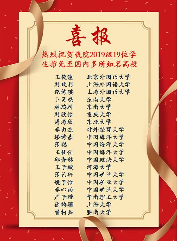 喜报:热烈祝贺博鱼体育 2019级19位学生推免至国内多所知名高校